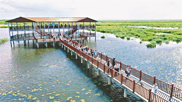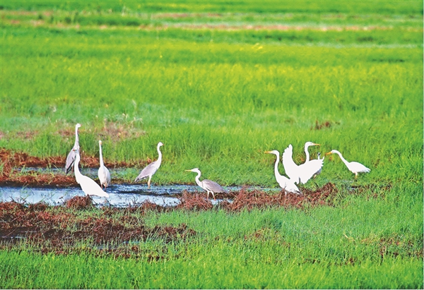 近日,寶清縣七星河國(guó)家級(jí)自然保護(hù)區(qū)濕地內(nèi)迎來(lái)大批游客,一望無(wú)際的濕地和葦塘讓游客心曠神怡。游客登上觀鳥臺(tái),俯瞰濕地,夕陽(yáng)下大批的水鳥在七星河內(nèi)覓食嬉戲,“葦蕩連天碧,水鳥漫云空”,一幅人與自然和諧共生的真實(shí)寫照。