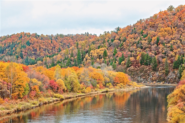 23日,農(nóng)歷傳統(tǒng)節(jié)氣秋分,火紅的楓葉、蒼翠的松枝、銀白的瀑布……陣陣秋風(fēng)把山林染成了五彩繽紛的顏色,美不勝收。在沾河林區(qū),登上瞭望臺(tái),滿眼秋色盡收眼底。黑龍江日報(bào)見習(xí)記者 張春雷攝