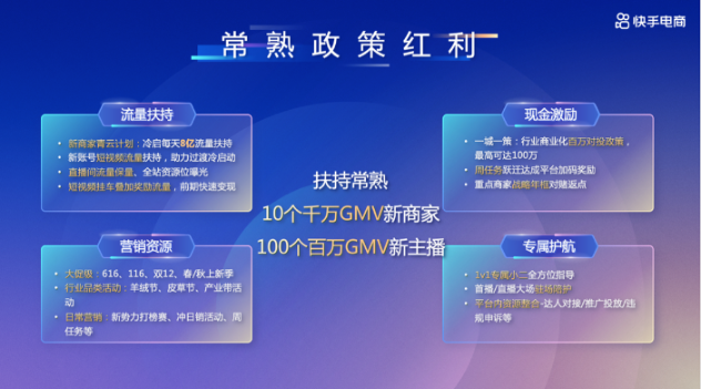 在流量扶持方面,新手常熟商家可享受“青云計(jì)劃”每天8億流量扶持,還有短視頻流量扶持、直播間流量保量、全站資源位曝光、短視頻掛車疊加獎(jiǎng)勵(lì)等;在營銷資源方面,快手電商打造每月高頻的營銷場(chǎng)景,包括大促、節(jié)日、行業(yè)品類活動(dòng)、寵粉節(jié)等,并為常熟商家提供活動(dòng)補(bǔ)貼,激活品牌動(dòng)銷;此外還有最高價(jià)值100萬的商業(yè)化對(duì)投政策、周任務(wù)躍遷達(dá)成平臺(tái)加碼獎(jiǎng)勵(lì)等現(xiàn)金激勵(lì),以及1V1專屬小二全方位指導(dǎo)等專屬護(hù)航。