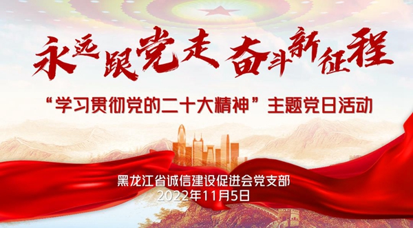 黑龍江經(jīng)濟網(wǎng)訊(劉懷宇 記者崔冰)為認真學習宣傳貫徹黨的二十大精神,落實《中共黑龍江省委關于認真學習宣傳貫徹黨的二十大精神 奮力譜寫全面建設社會主義現(xiàn)代化國家龍江新篇章的決定》,迅速掀起學習貫徹黨的二十大精神的熱潮,黑龍江省誠信建設促進會黨支部于11月5日下午,在線上開展以“學習貫徹黨的二十大精神”為主題的黨日活動。