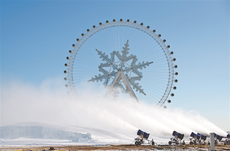 人工造雪機(jī)齊噴射。本報記者 郭俊峰攝