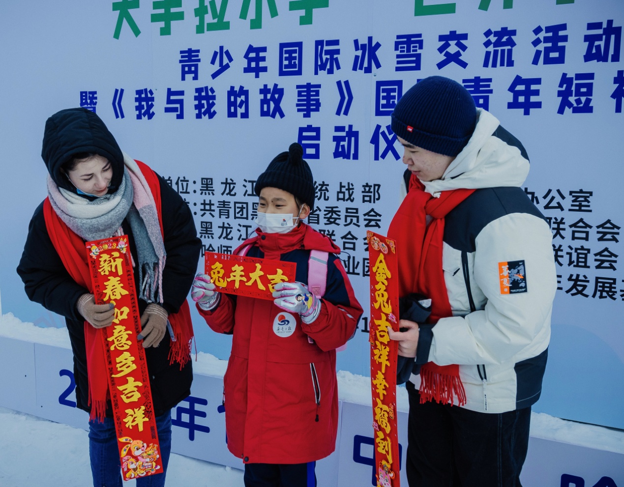當(dāng)天上午,在雪博會(huì),來自黑龍江大學(xué)的各國留學(xué)生代表與中國青少年結(jié)對互動(dòng),互贈(zèng)新春禮物,表達(dá)對即將迎來的兔年美好祝福。中外青少年小手拉大手,共游太陽島雪博會(huì),鯉魚躍龍門、圓夢啟程、雪冠博覽等雪雕雪景讓大家流連忘返。世界各國青少年一起雕刻“宇航員”雪雕,送上春聯(lián)祝福語,體驗(yàn)了中國傳統(tǒng)文化和濃濃的年味,表達(dá)了對世界文化共融的美好祝愿。
