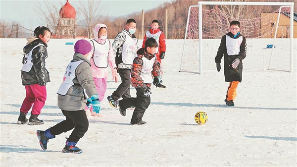 雪地足球秀腳法。圖片由黑龍江省體育局提供