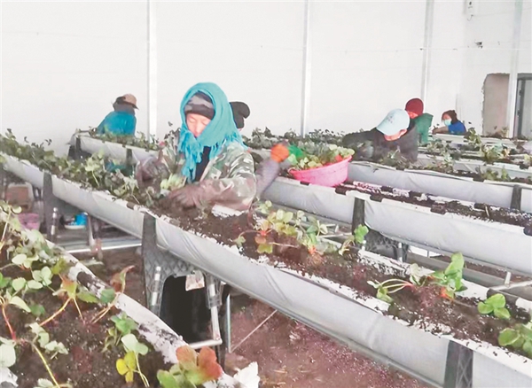 “早上7點(diǎn)去,下午4點(diǎn)多就收工回來(lái)了,離家近,每天能賺150元,挺好的?!睆埥鹣阏f(shuō)。走進(jìn)產(chǎn)業(yè)園的草莓溫室大棚,如張金香一般來(lái)自谷大村的女工們正認(rèn)真地進(jìn)行著手中的工作。移栽、覆膜、澆水……14萬(wàn)株蘊(yùn)含著期待與希望的草莓秧苗正在茁壯成長(zhǎng)。