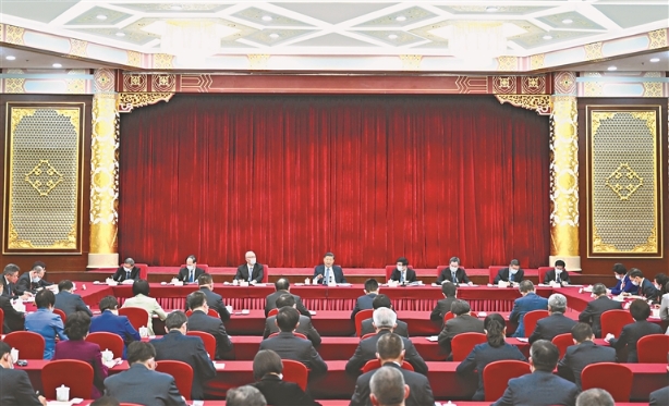3月6日,中共中央總書記、國家主席、中央軍委主席習近平看望參加全國政協(xié)十四屆一次會議的民建、工商聯(lián)界委員,并參加聯(lián)組會,聽取意見和建議。中共中央政治局常委、全國政協(xié)十四屆一次會議主席團會議主持人王滬寧,中共中央政治局常委蔡奇、丁薛祥參加看望和討論。新華社記者 謝環(huán)馳攝