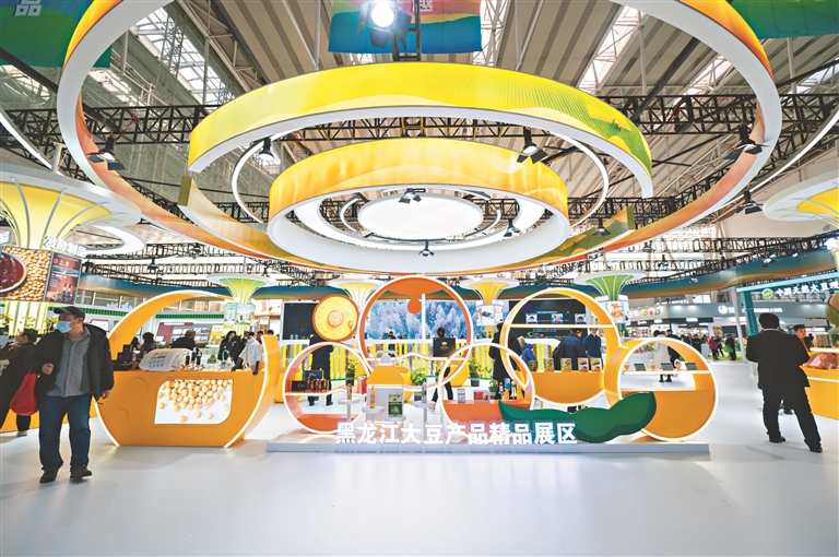 黑龍江大豆產(chǎn)品精品展區(qū)。本報(bào)見(jiàn)習(xí)記者 張春雷攝