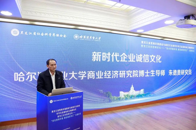 哈爾濱商業(yè)大學商業(yè)經(jīng)濟研究院朱德貴研究員以《新時代企業(yè)誠信文化》為題作主旨報告。