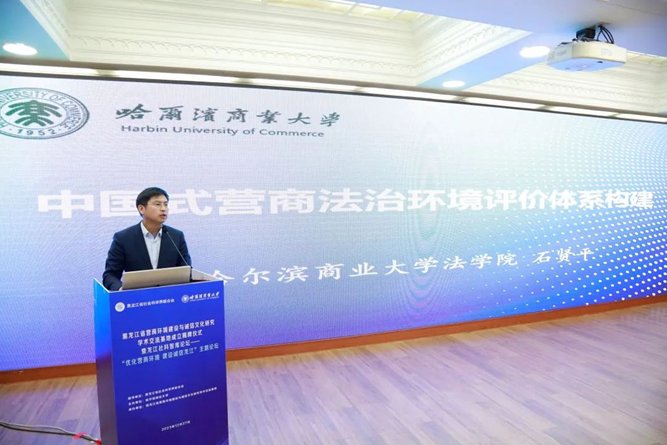 哈爾濱商業(yè)大學法學院副院長石賢平教授以《中國式營商法治環(huán)境評價體系構建》為題作主旨報告。