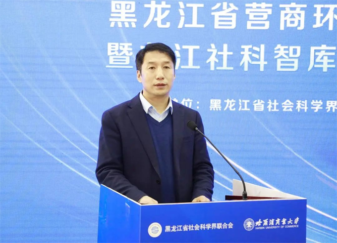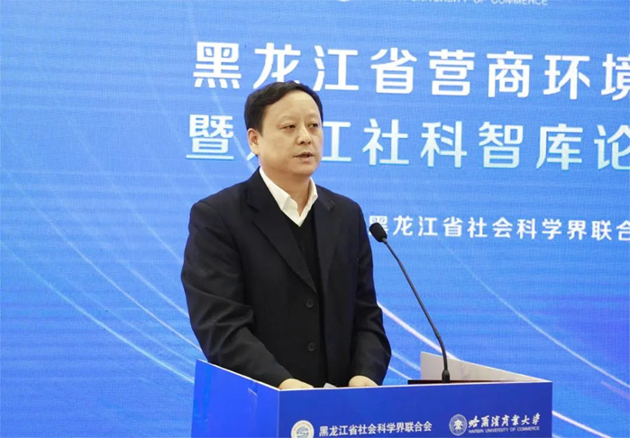 哈爾濱商業(yè)大學黨委書記孫先民致歡迎辭。他介紹了學校70余年辦學治校積累的豐富經(jīng)驗和豐碩成果,指出學校充分發(fā)揮學科專業(yè)研究方向及特色優(yōu)勢,在服務社會信用體系構建、助力社會信用環(huán)境和營商環(huán)境優(yōu)化、服務新時代文明實踐、帶動全社會道德素質(zhì)和文明程度提升、服務商業(yè)模式實踐與創(chuàng)新、切實擔負起服務國家戰(zhàn)略、助力龍江發(fā)展的時代使命等方面取得了成果成效。
