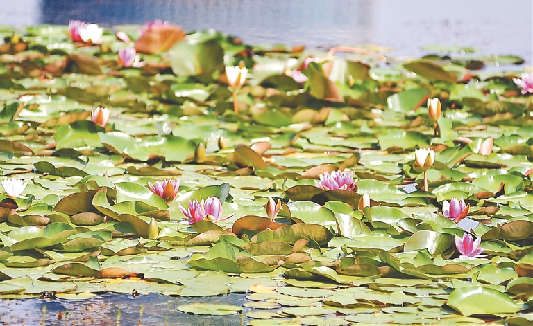 時(shí)下,位于哈爾濱市道里區(qū)的群力丁香公園人工湖內(nèi),大片的睡蓮競相綻放,吸引眾多市民和游客前來觀賞拍照。這些睡蓮花朵有白色的、粉色的、紅色的,驚艷綻放,美在當(dāng)“夏”。