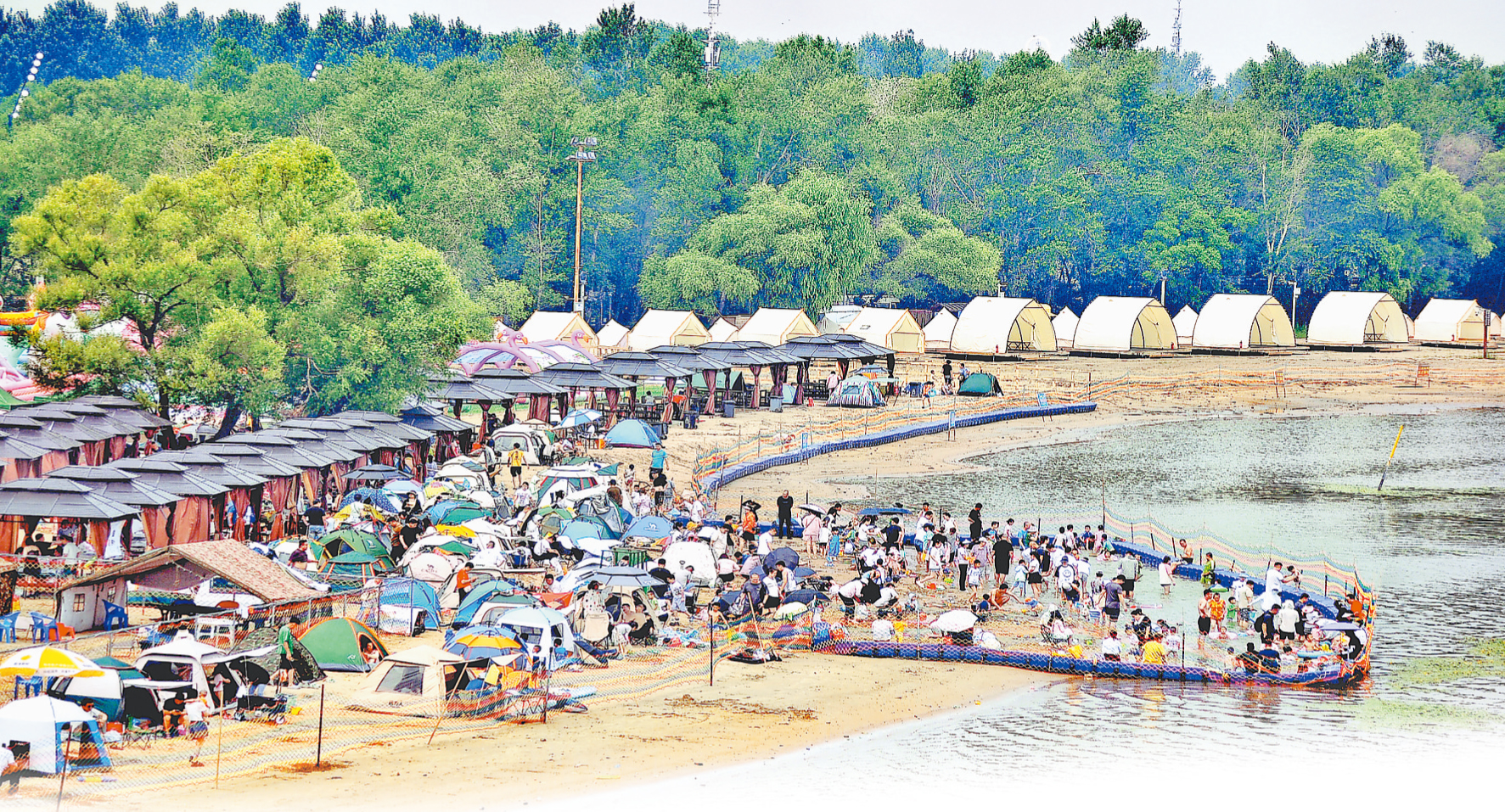 日前,哈爾濱市江北公路大橋附近的公益沙灘浴場(chǎng)內(nèi),許多市民帶著孩子在戲水納涼。這處沙灘浴場(chǎng)面積有數(shù)百平方米,水中最深處只有半米多,周?chē)O(shè)置了隔離帶、安全網(wǎng)。孩子們盡情玩樂(lè),有的在學(xué)游泳、有的玩水槍、有的在堆沙子、有的在挖“水渠”,叫喊聲、歡笑聲不絕于耳。