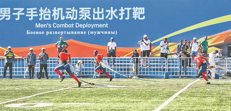 本報10日訊(記者蔡韜)10日,第19屆男子和第10屆女子世界消防救援錦標賽圓滿閉幕。在當日的比賽中,中國隊以25秒64獲女子手抬機動泵出水打靶比賽冠軍,以27秒72獲男子手抬機動泵出水打靶比賽第二名。