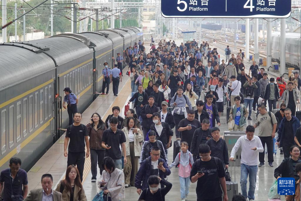 9月30日,旅客在山東煙臺站出站。新華社發(fā)(唐克攝)