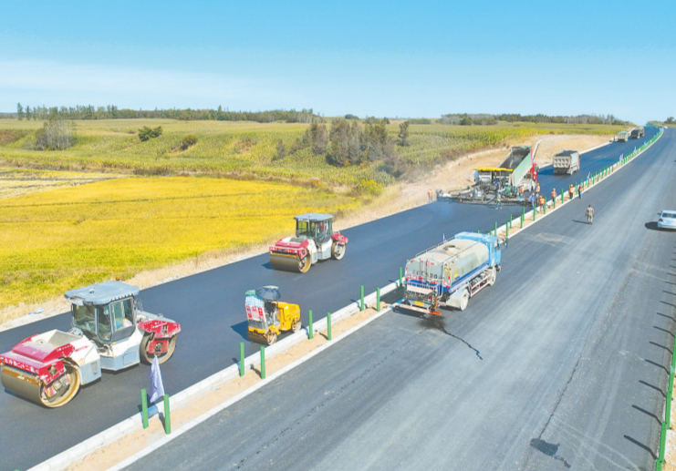 本報訊(丁旭 記者郭俊峰)秋高氣爽,施工黃金期。近日,記者在鐵科高速公路方正至延壽尚志界段項目K214瀝青攤鋪施工現(xiàn)場看到,大型攤鋪機(jī)正在進(jìn)行路面中面層的瀝青攤鋪,兩臺光輪壓路機(jī)對已攤鋪的瀝青進(jìn)行碾壓,工人各負(fù)其責(zé),有序施工。