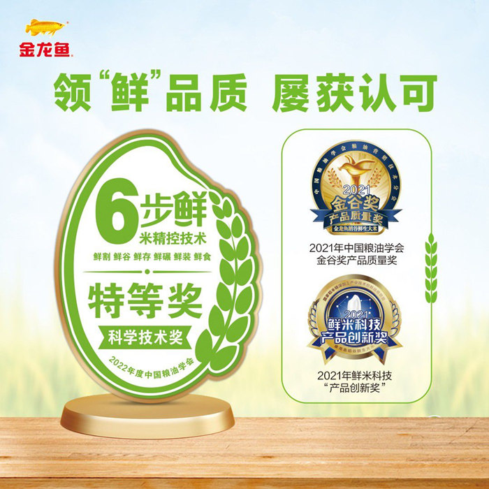 這不是金龍魚6步鮮大米第一次獲得金獎殊榮。6步鮮大米采用的稻谷“6步鮮米精控技術”創(chuàng)新體系開發(fā)及產(chǎn)業(yè)化,在2022年獲得了中國糧油學會科學技術獎特等獎。這也是中國糧油學會科學技術獎當年惟一一個“特等獎”項,含金量可見一斑。