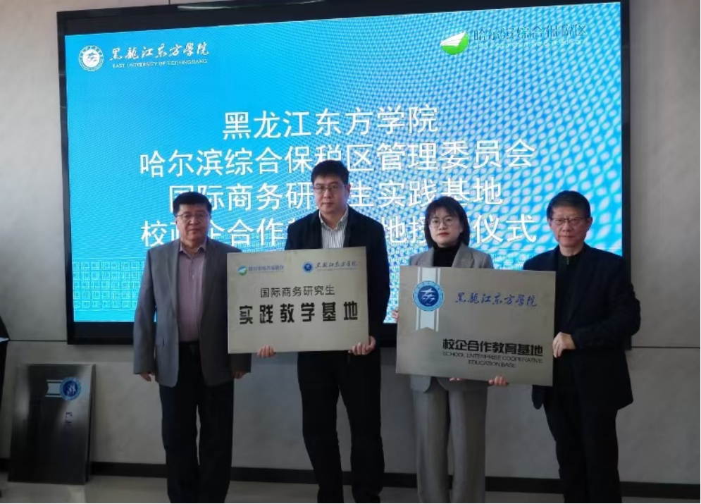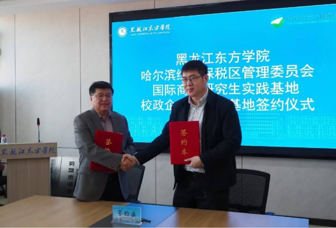 黑龍江經(jīng)濟網(wǎng)訊(記者李凌雪)11月20日,哈爾濱綜合保稅區(qū)與黑龍江東方學院舉行校政企產(chǎn)教研發(fā)展戰(zhàn)略合作協(xié)議簽約授牌儀式。哈爾濱綜合保稅區(qū)副主任張旭與黑龍江東方學院副校長程延江共同為國際商務(wù)研究生實踐基地、校企合作教育基地授牌并簽署合作協(xié)議。