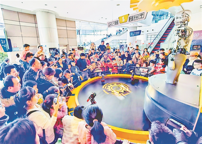 2日,省科技館內(nèi),許多家長(zhǎng)帶著孩子前來參觀。