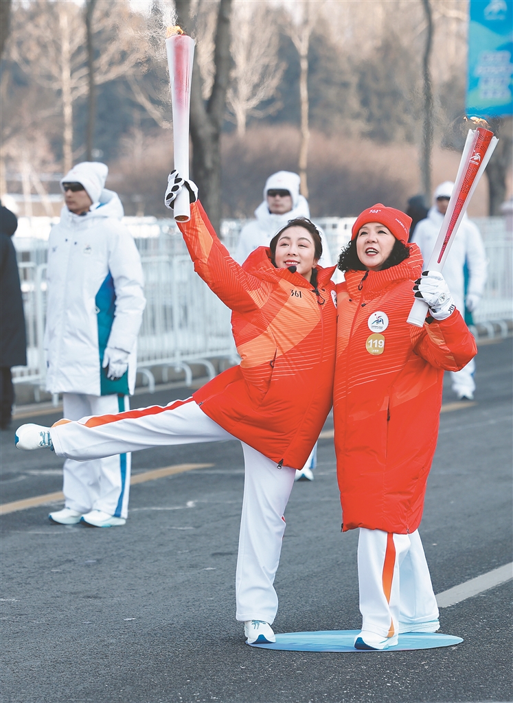 火炬手隋文靜(左)與火炬手欒波。本報記者 張澍攝