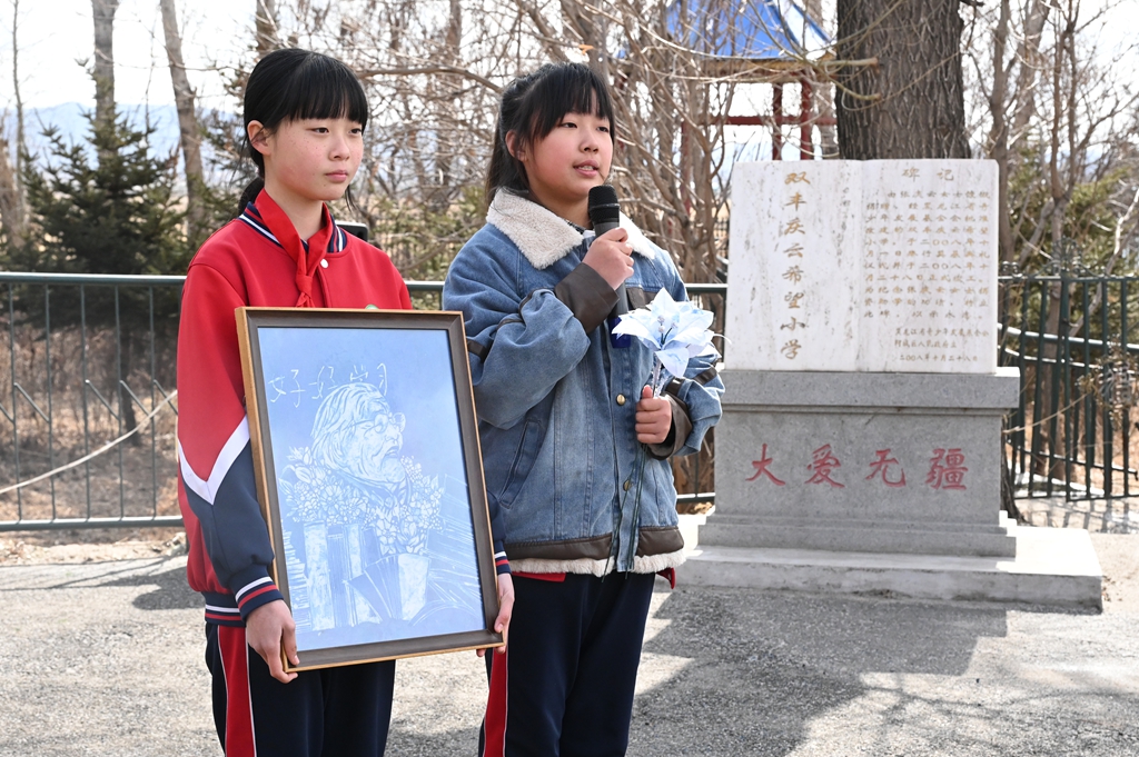 活動中,黨員和少先隊員代表向老黨員張慶云同志紀念碑敬獻鮮花,并全體緬懷。團省委、省捐助中心、哈爾濱市注冊會計師行業(yè)黨員代表為學生們送去了圖書和學習用品。