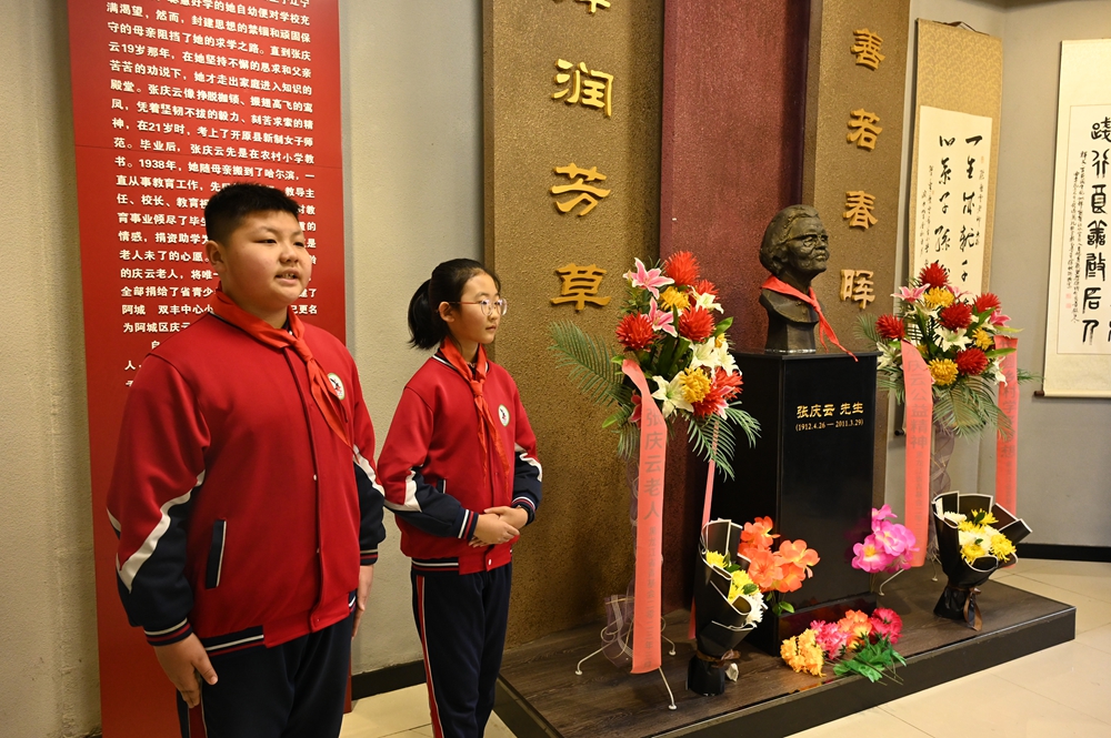 黑龍江經(jīng)濟網(wǎng)訊(王丹陽 記者 祝東)近日,在百歲老人張慶云逝世十四周年之際,“致敬黨員楷模,向張慶云同志學習”主題黨日活動在阿城區(qū)雙豐鎮(zhèn)慶云希望小學開展。團省委機關、省希望工程捐助中心、哈爾濱市注冊會計師行業(yè)、團阿城區(qū)委、區(qū)教育局等單位黨員代表,以及阿城區(qū)“思政一體化”聯(lián)盟校相關領導參加了紀念活動。