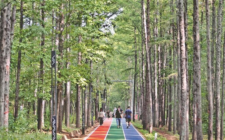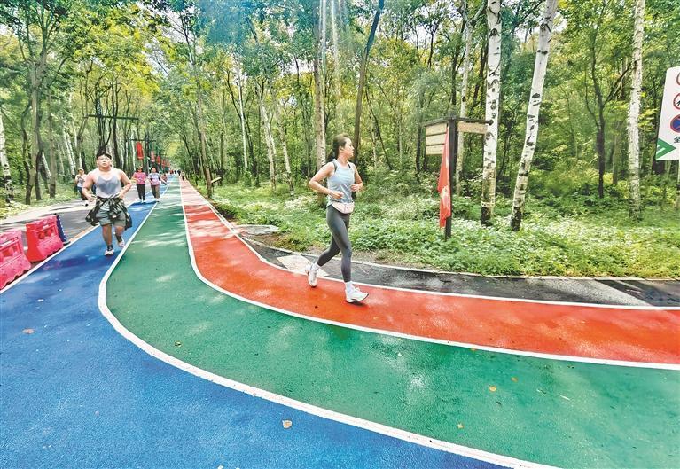 一位在這里跑步的附近居民說(shuō),林間空氣清新,負(fù)氧離子含量高,對(duì)人體有很大益處。一邊跑步健身,一邊觀賞林間美景,感覺舒服又愜意。