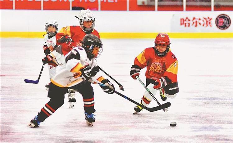 3日,在哈爾濱市南崗區(qū)炫采冰上運動中心氣膜冰場內,一場精彩的冰球比賽正在進行中。突破、傳球、射門……參賽隊員大都是十歲左右的少年,但他們的拼搏精神并不亞于成年專業(yè)運動員。本報記者 蘇強攝