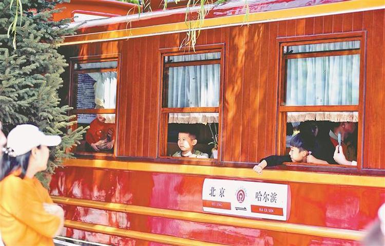 2日,在哈爾濱市兒童公園內,許多家長帶著孩子坐上小火車,一路歡笑地觀賞鐵軌沿線的美麗秋色。本報記者 蘇強攝
