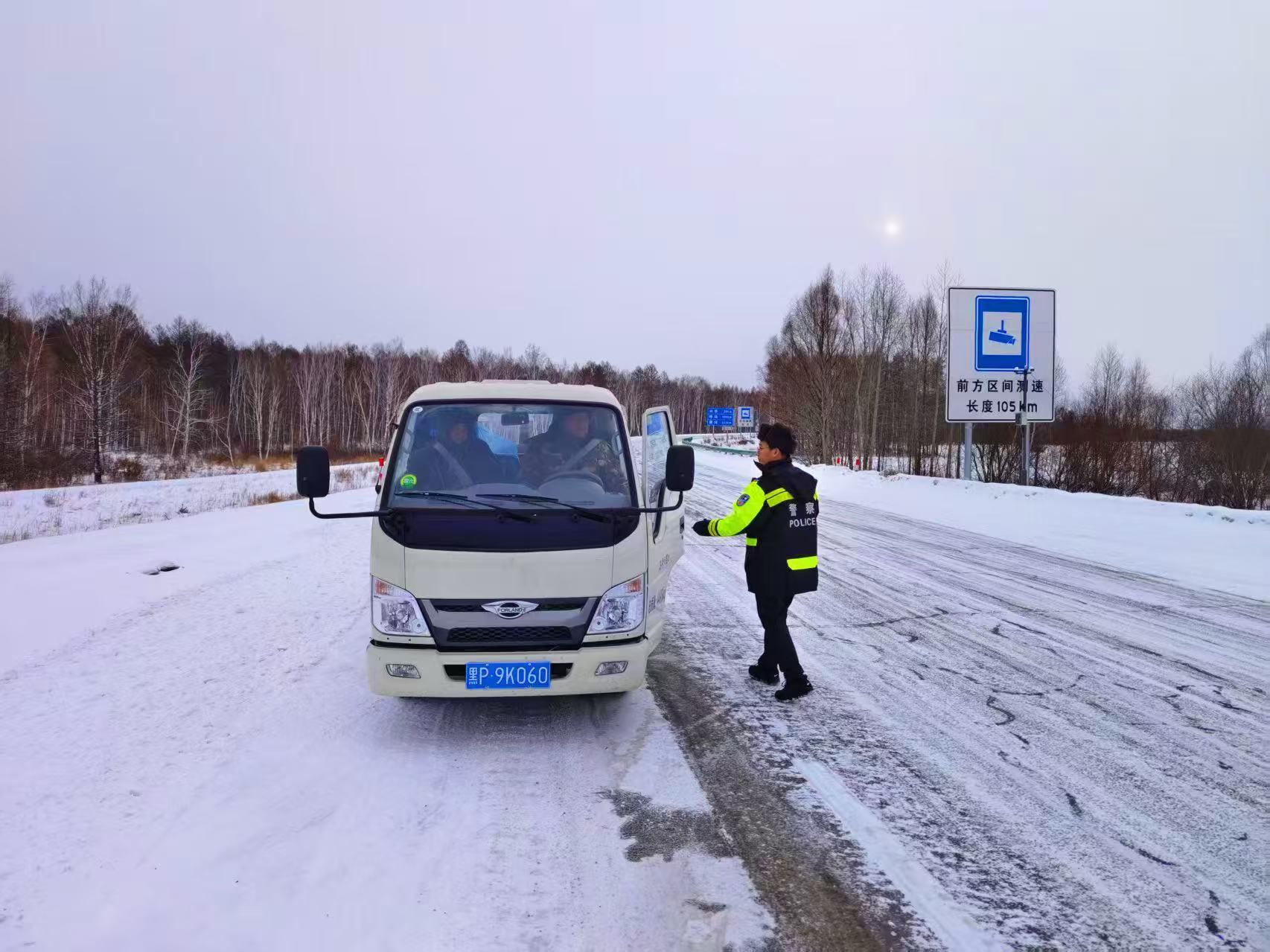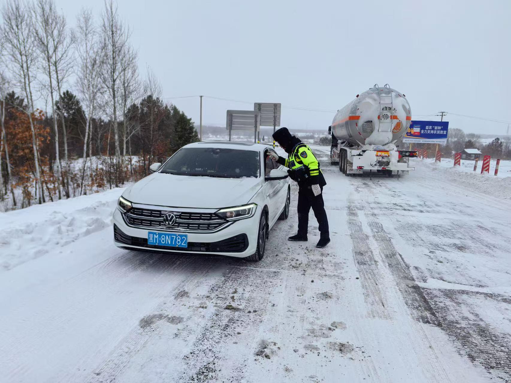 隨后,民輔警駕駛警車(chē)小心翼翼地穿行在積雪路段,一邊緩慢行駛,一邊實(shí)時(shí)觀察路面情況,并不時(shí)向游客講解雪天出行安全常識(shí),提醒景區(qū)內(nèi)棧道濕滑需謹(jǐn)慎慢行。臨別前,呼瑪公安民輔警再次叮囑游客注意游覽安全,及時(shí)關(guān)注天氣變化和返程路況,必要時(shí)可隨時(shí)聯(lián)系景區(qū)執(zhí)勤崗點(diǎn)求助。