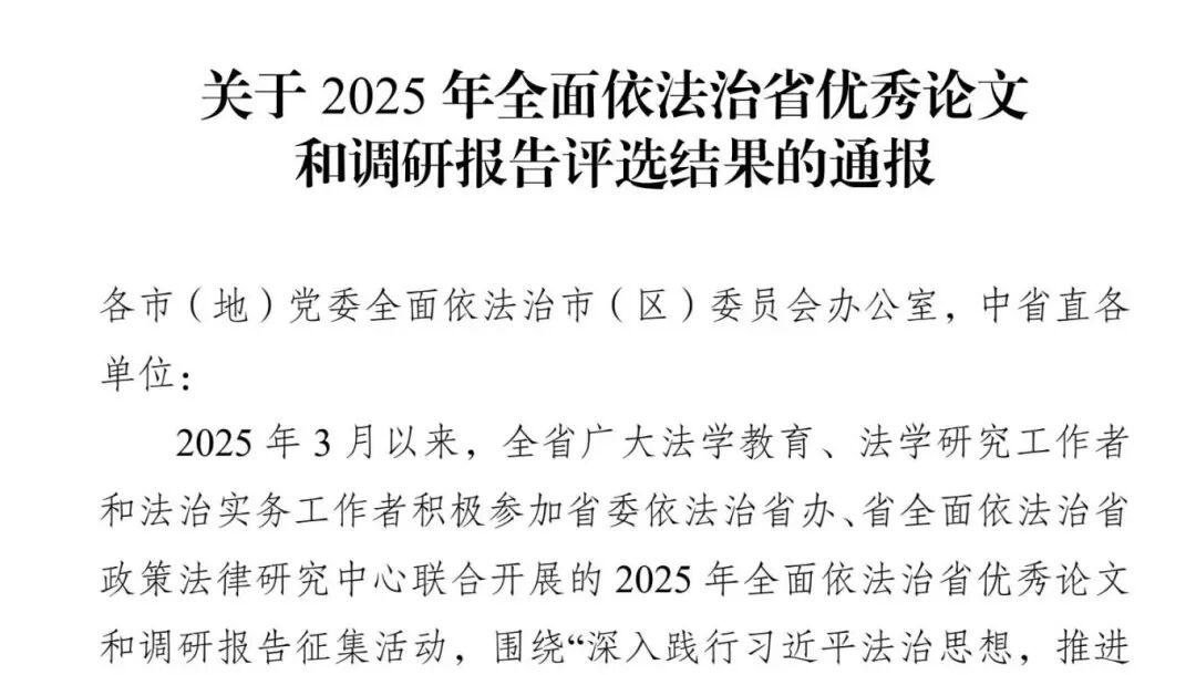 黑龍江經(jīng)濟網(wǎng)訊(董慧瑩 李雪松)近日,省委依法治省辦印發(fā)《關(guān)于2025年全面依法治省優(yōu)秀論文和調(diào)研報告評選結(jié)果的通報(黑法辦發(fā)〔2025〕10號)》,公布最終評選結(jié)果。本次評選活動共征集論文1370篇,經(jīng)初評復(fù)審,共有465篇論文進入終評;經(jīng)學(xué)術(shù)不端檢測、評委會認真審閱,最終評選出獲獎?wù)撐?86篇。肇東市人民法院報送參評論文8篇,共有3篇獲獎。