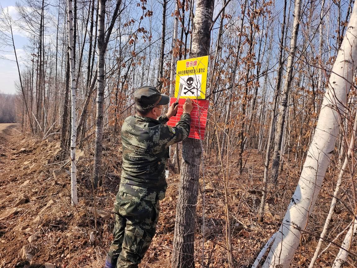 林場工作人員在設置警示標牌(張春義 攝)