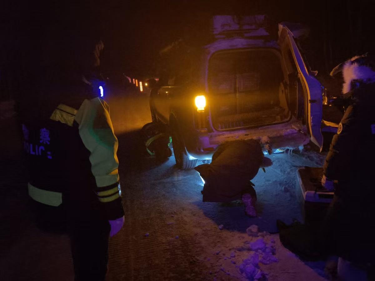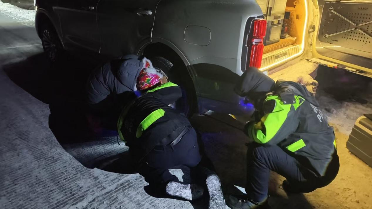 黑龍江經(jīng)濟(jì)網(wǎng)訊(婁暢)近日,呼瑪縣轄區(qū)強(qiáng)降溫、降雪伴隨大風(fēng)天氣,給道路通行帶來(lái)極大安全隱患,呼瑪縣公安局民輔警按照惡劣天氣應(yīng)急處置預(yù)案開(kāi)展巡邏防控,將巡邏管控與便民服務(wù)相結(jié)合,及時(shí)為群眾解決出行難題。12月25日晚,民輔警巡邏中及時(shí)救助一臺(tái)爆胎車(chē)輛。