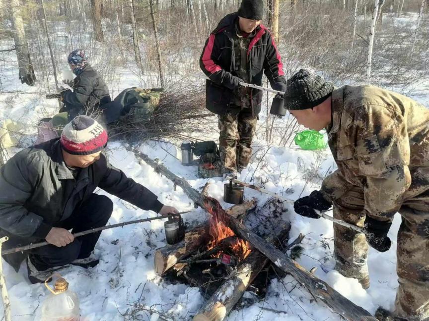 餐風(fēng)飲雪不言苦,苦中作樂顯擔(dān)當(dāng)。正午時分,忙碌的作業(yè)暫告一段落,林間背風(fēng)處便成了臨時“餐桌”。職工們聚在一起,圍坐在火堆旁,就著寒風(fēng),分享著熱氣騰騰的盒飯。沒有舒適的就餐環(huán)境,只有白雪皚皚的林海作伴;沒有豐盛的佳肴,只有簡單的飯菜暖胃暖心。大家邊吃邊聊,交流著當(dāng)天的作業(yè)進(jìn)度,分享著林區(qū)里的新鮮事,爽朗的笑聲回蕩在林間。艱苦的條件絲毫沒有消減大家的干勁,反而凝聚起攻堅(jiān)克難的強(qiáng)大合力,這便是育英林場人獨(dú)有的“苦中作樂”,更是對綠水青山的執(zhí)著堅(jiān)守。