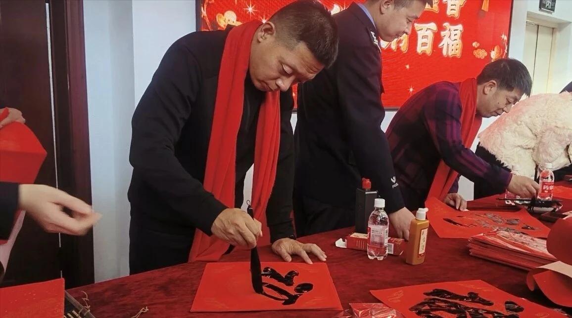 局政委王秀東出席活動儀式并致辭,政工室主任劉鐵主持活動,市書法家協(xié)會名家與該局書法愛好者齊聚一堂,為堅守崗位的民輔警送上新春祝福與文化滋養(yǎng)?;顒蝇F(xiàn)場暖意融融、墨香四溢。大紅宣紙整齊鋪展,筆墨硯臺依次排開,書法家們凝神聚力、揮毫潑墨,筆鋒或遒勁有力、或溫婉流暢。一副副寓意深遠的春聯(lián)躍然紙上,一個個飽滿圓潤的“?!弊殖休d著美好期許,既彰顯了中華傳統(tǒng)文化的魅力,又融入了公安工作的使命擔當。